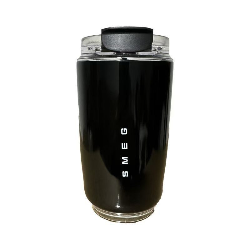 برند اسمگ (SMEG) از معروفترین برندهای لوازم خانگی با طراحی رترو و الهامگرفته از دهه ۵۰ میلادی است. تراول ماگ حاضر نیز با همان فرم خاص و منحنیهای جذاب طراحی شده است. بدنهی مشکی مات، لوگوی برجستهی «Smeg»، و فرم استوانهای نرم و بدون زاویه، حس اصالت و لوکس بودن را منتقل میکند. طراحی دستهدار و درب کاملاً فیتشونده، این ماگ را از بسیاری از محصولات مشابه متمایز میکند.